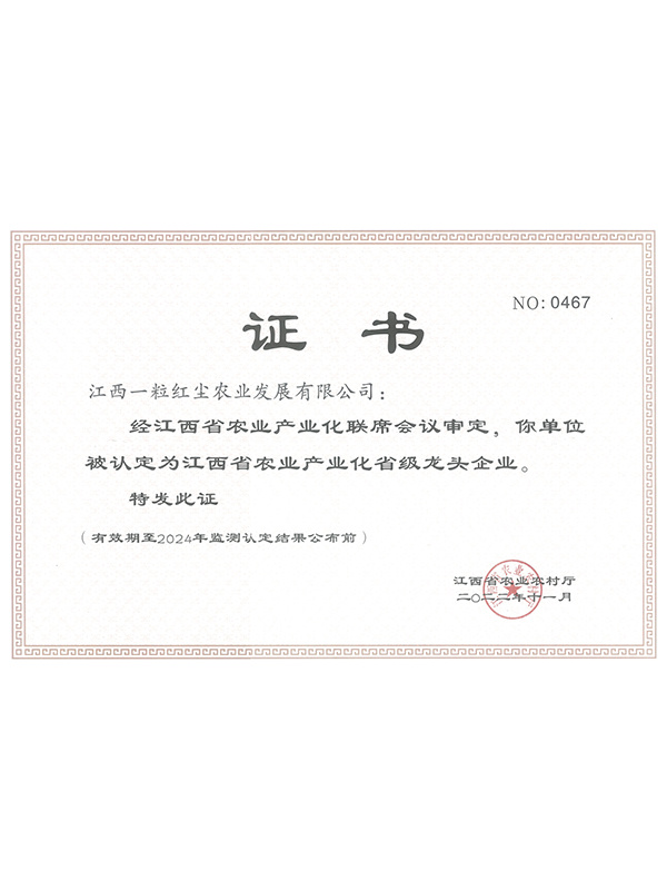 通過一系列扎實有效的工作措施,我們企業(江西一粒紅塵農業發展有限公司)在農產品質量安全方面取得了顯著成效。未來,我們將繼